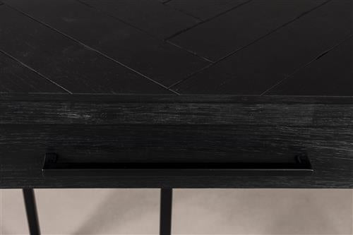 La chaleur du placage en bois d'acacia finition noire, se marie parfaitement avec l'élégante base noire. Ensemble, les matériaux confèrent un look haut de gamme, qui ajoute immédiatement une atmosphère à n'importe quelle pièce. Le motif à chevrons incrusté donne également au meuble une touche unique.