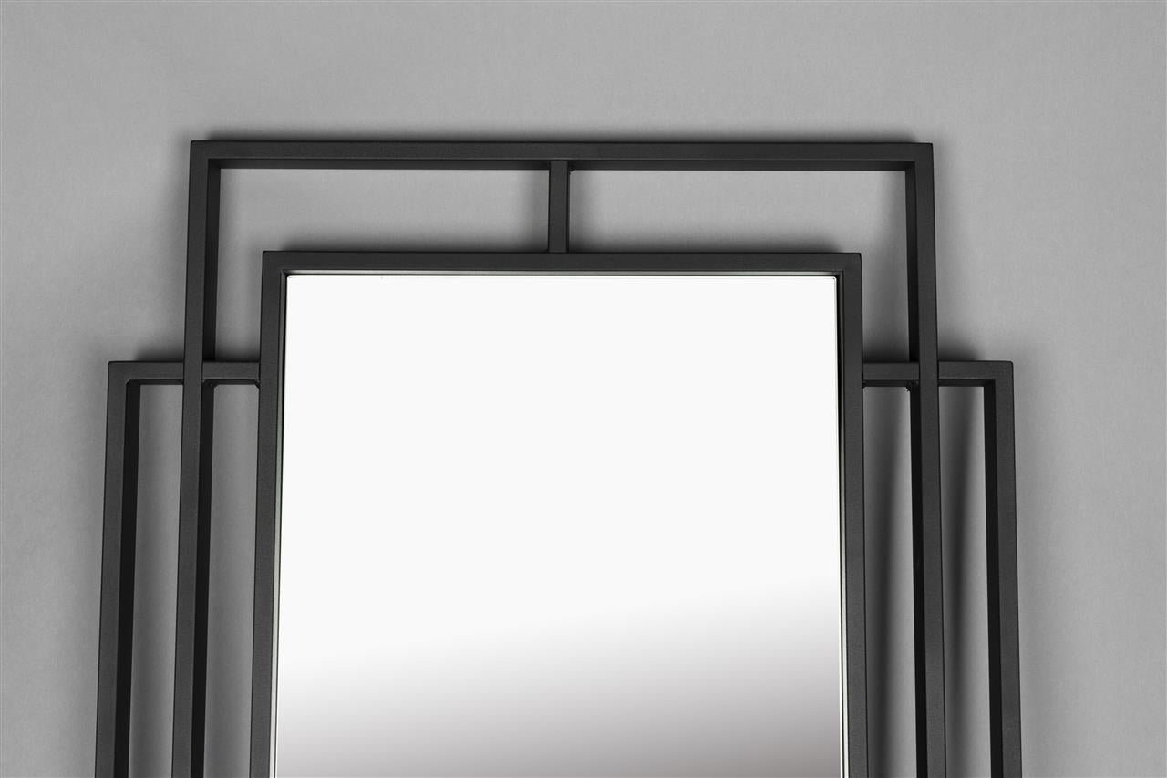 Le style Art Déco saisissant du miroir avec le jeu de lignes de métal noir donne un look excentrique et est un clin d'œil au passé.