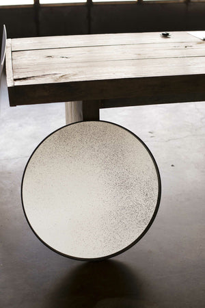 Ce miroir rond vieilli "Aged Clear" se trouve à mi-chemin entre une pièce d’art et fonctionnelle.