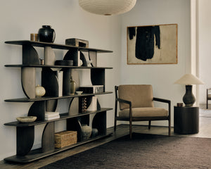 Découvrez l'élégance fonctionnelle avec la bibliothèque Géométric Ethnicraft en teck foncé. Disponible à Liège pour une déco sophistiquée. A l'Est d'Eden.