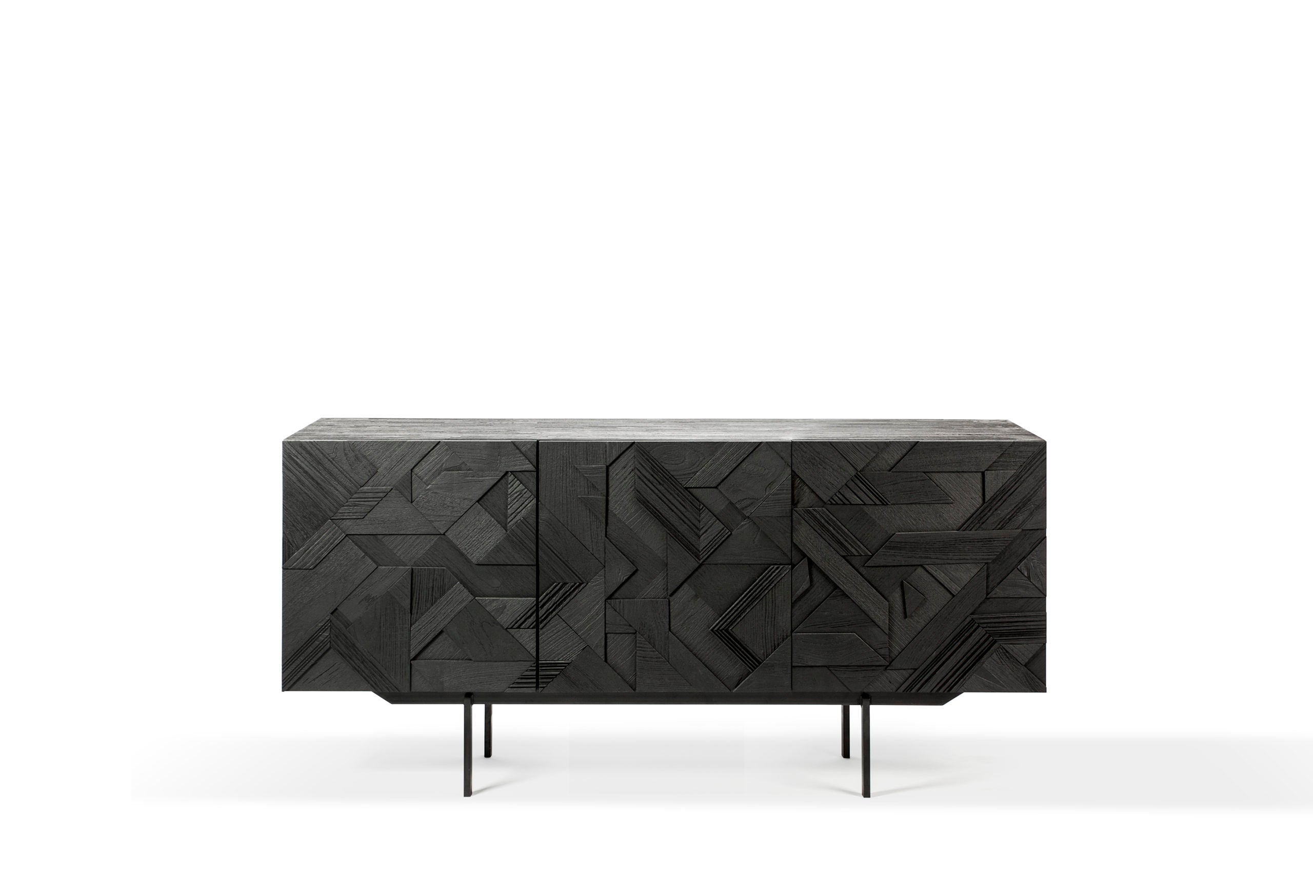 Ajoutez une touche contemporaine avec le buffet Graphic Ethnicraft en teck teinté noir. Choisissez entre 3 ou 4 portes, pieds en métal noir. Disponible à Liège, à l'Est d'Eden.