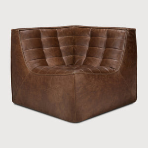 Ethnicraft - Canapé N701 - Angle 90° droit - Cuir Chestnut - 91 x 91 x H76