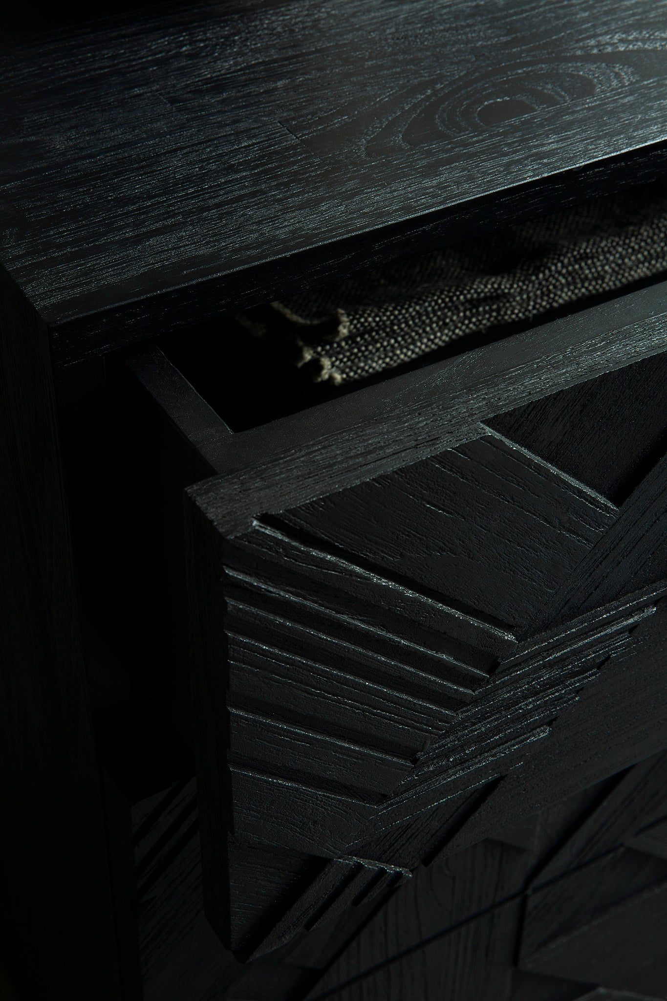 Créez une ambiance sophistiquée avec la commode Graphic en teck noir verni d'Ethnicraft. Trois tiroirs, réservez en ligne pour une organisation stylée. Disponible à Liège, à l'Est d'Eden.
