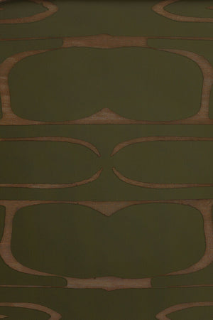 La richesse artistique du vert mousse et de la palette d'encre métallique confère une sophistication feutrée à son environnement.