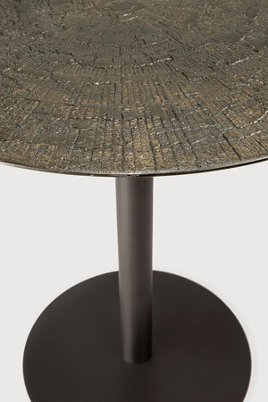 Le plateau de la table présente une finition Ray Whiskey Minerals et un piètement thermolaqué de couleur Dark Bronze.