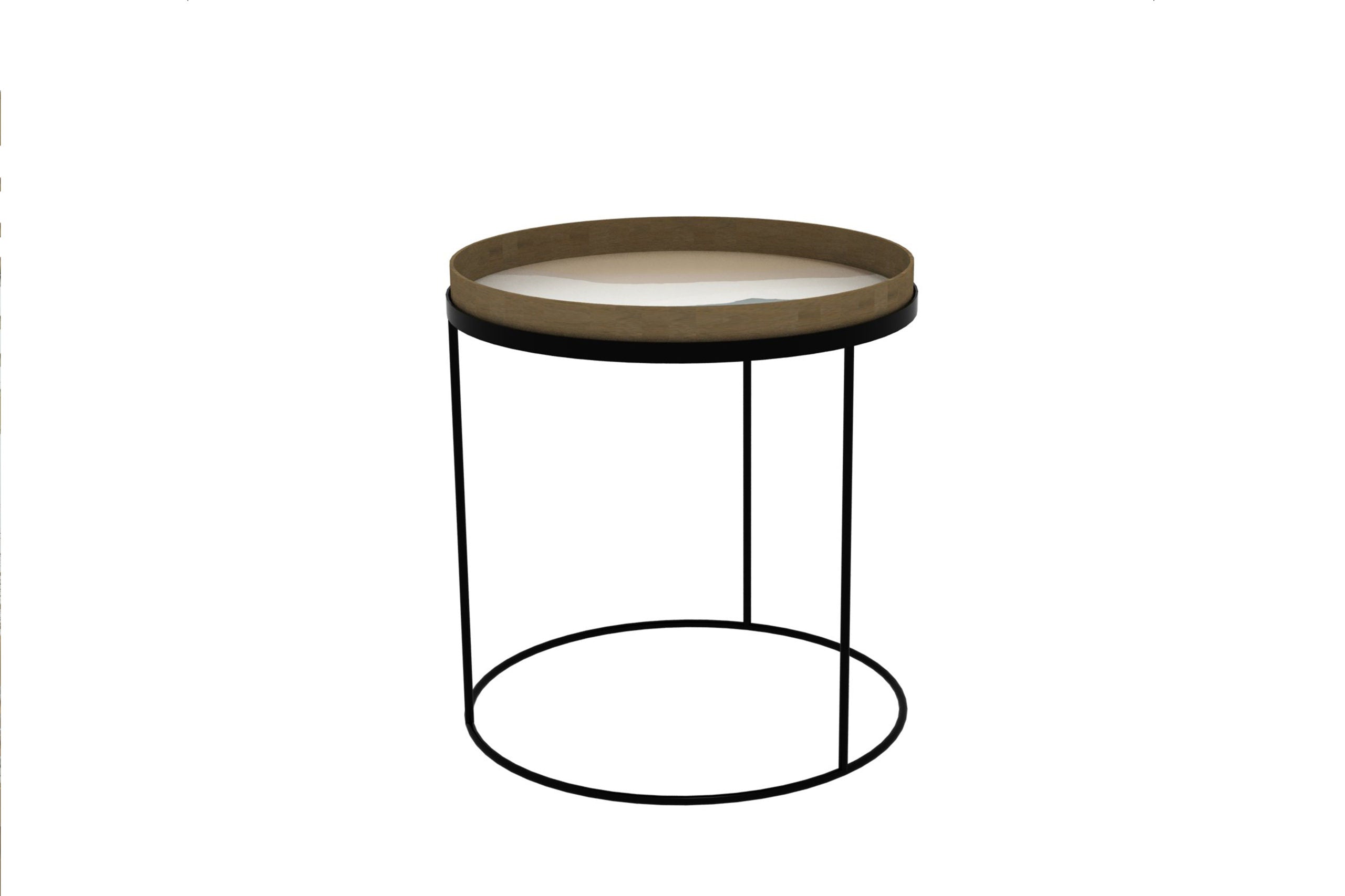 Ajoutez une touche contemporaine avec la Table d'appoint à plateaux ronde Ethnicraft en métal. Dimensions S : 49 x 49 x H66. Personnalisez-la avec le plateau de votre choix. Réservez en ligne dès maintenant. Disponible à Liège.