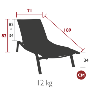 Collection fermob, Outdoor. Le bain de soleil Alizé XS. En Aluminium et Textilène. Pratique car empilable, il résiste parfaitement aux conditions extérieures. Disponible à Liège. A l'Est d'Eden.