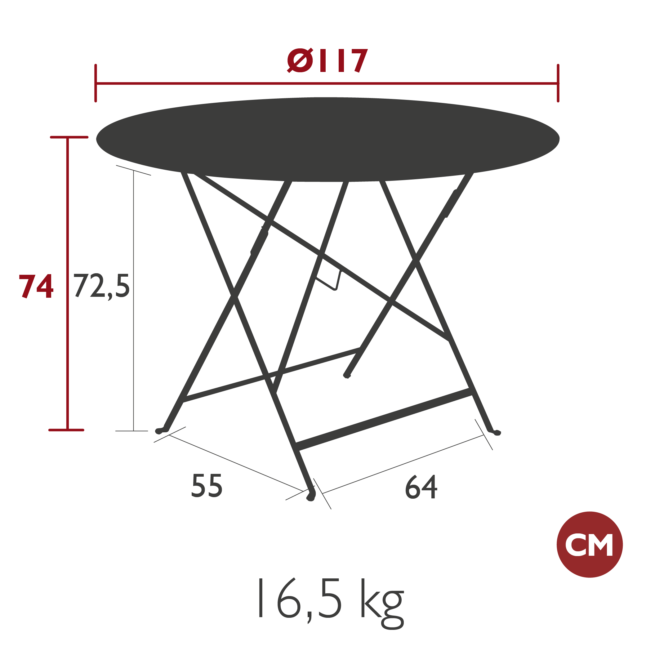 Avec son diamètre de 117 cm, cette table permet d'accueillir confortablement jusqu'à six convives. Son design intelligent permet de profiter d'une grande surface de repas tout en conservant la modularité légendaire de la collection : elle se plie et se déplie en un clin d'œil pour libérer l'espace selon vos envies.