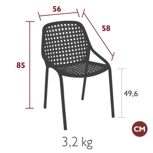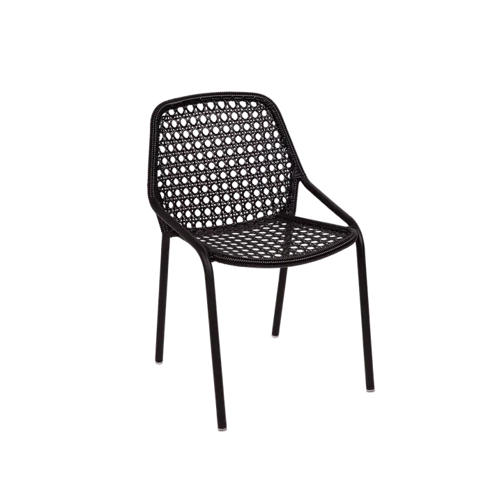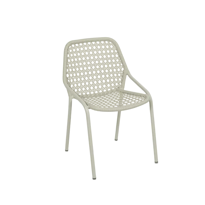 Fabriqué en aluminium et en fil d'acier tressé à la main , il résiste aux saisons comme aux tendances, tout en restant facile à vivre : léger, empilable et facile d'entretien .