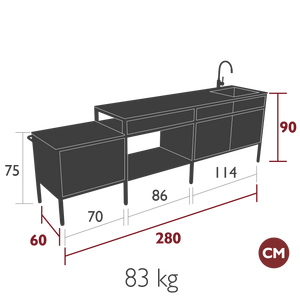 L' évier en acier inoxydable brossé complète cet ensemble raffiné : robuste et facile d'entretien, il est conçu pour résister aux intempéries. En cas d'utilisation en bord de mer, un nettoyage régulier à l'eau claire est recommandé.