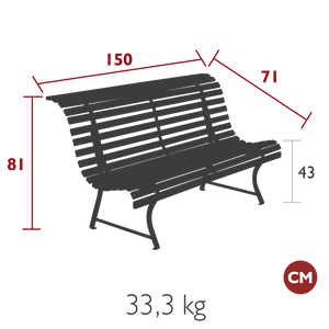 Collection Fermob. Outdoor. Avec ses lattes en acier, ce Banc Louisiane à la forme intemporelle trouvera sa place dans tous les aménagements extérieurs. Choix entre 25 coloris. Disponible à Liège, à l'Est d'Eden.