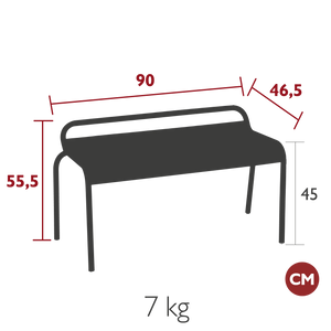 Collection Fermob. Dans la gamme Luxembourg, découvrez un produit très singulier : le banc compact. 90 x 46.5 cm. Disponible à Liège. A l'Est d'Eden.