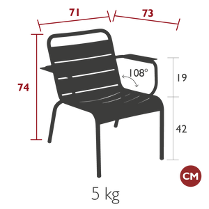Collection Fermob. Fauteuil Lounge Luxembourg, chic et convivial. Redressez-vous pour un confort optimal. 25 coloris disponibles. Disponible à Liège. A l'Est d'Eden.