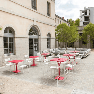 Le guéridon haut Luxembourg de Fermob transpose l'élégance des jardins parisiens en version "mange-debout". Fabriquée en France, cette table haute carrée en aluminium combine une silhouette aérienne à une stabilité exceptionnelle grâce à son pied central lesté d'acier (21,5 kg). Parfaite pour 4 convives, elle résiste à tout, même aux embruns marins. Un monument du design à découvrir en 25 couleurs chez À l'Est d'Eden, votre expert Fermob à Liège.