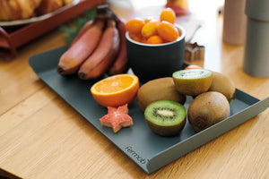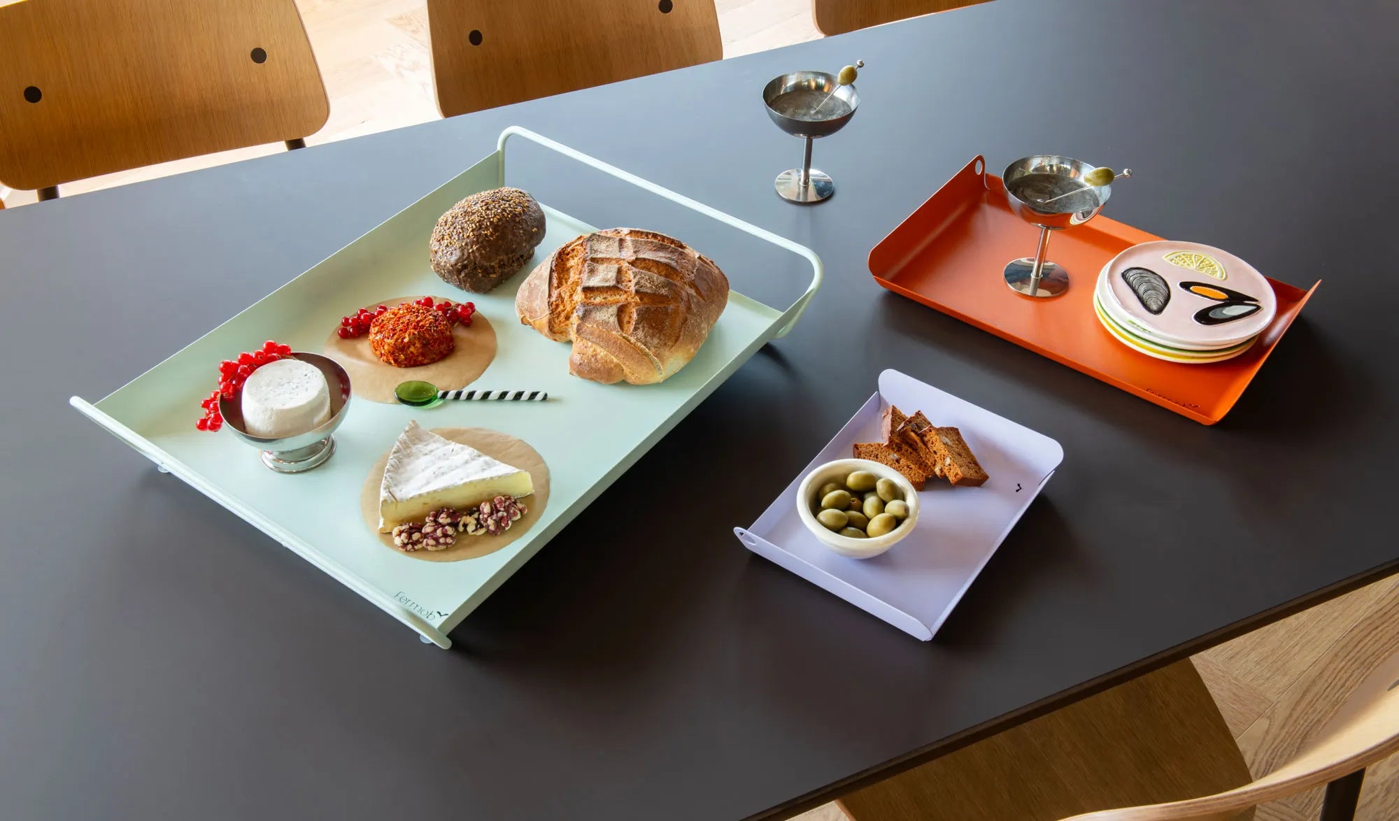 Chez Fermob, la nouveauté d'Alto réside dans ses petits plateaux qui s'emboîtent dans le grand (53 x 38,5 cm) pour créer trois éléments.