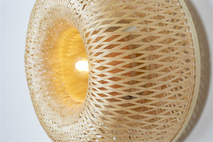 L'applique murale Barbados de la collection GOOD&MOJO. Diamètre 35 x H.17. En bambou. Base en métal et abat-jour Naturel ou Naturel/Brun. Disponible à Liège, à l'Est d'Eden.