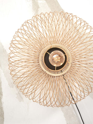 L'applique murale Cango de la collection GOOD&MOJO. Diamètre 60 x H.25. Cable 2,5 mètres. En bambou, Coloris Nature ou Noir. Disponible à Liège, à l'Est d'Eden.