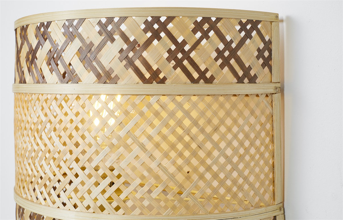 L'applique murale Langkawi de la collection GOOD&MOJO. Diamètre 32 x H.25. En bambou. Base en métal et abat-jour Naturel ou Naturel/Brun. Disponible à Liège, à l'Est d'Eden.