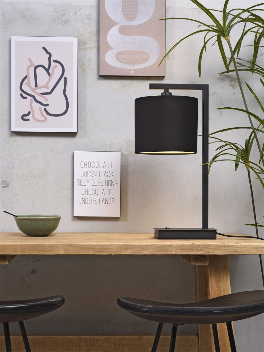 En métal Noir, Abat-jour en Black, Dark Linen, Light Linen ou White.