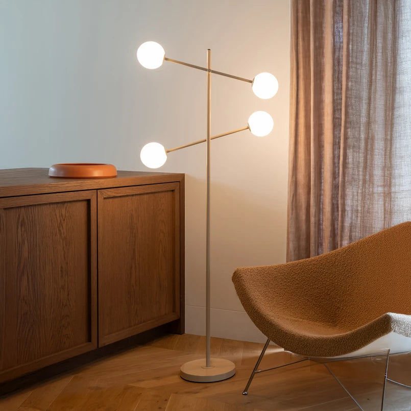 La lampe sur pied Copenhage de It's About Romi allie fer et verre pour créer un luminaire élégant. Doté de bras rotatifs et de quatre sources lumineuses, il offre une flexibilité maximale pour orienter la lumière.