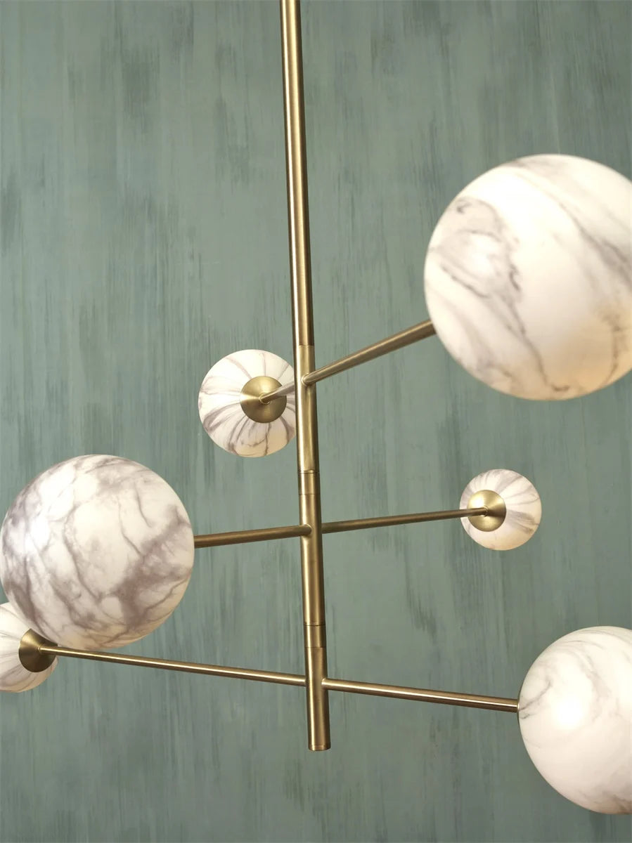 Dans la collection it's about Romi, cette élégante suspension Carrara H3, en métal Or et globes en marbre blanc. Disponible à Liège, à l'Est d'Eden.