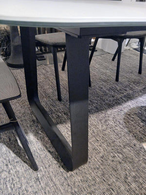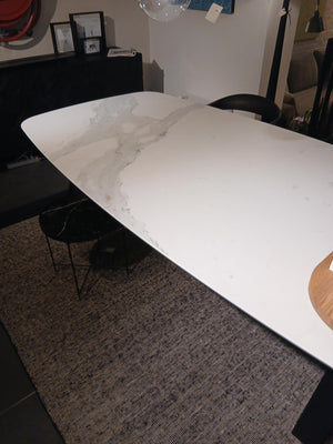 Joli - Table Curve - Faux Ellipse - Céramique Calacatta / Aluminium - Dim. 220 x 110 x H75 - Modèle d'exposition