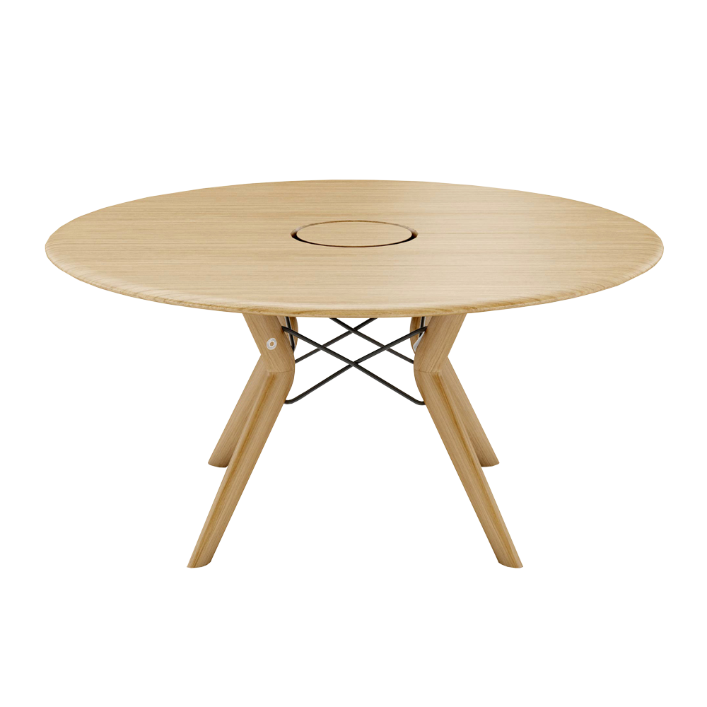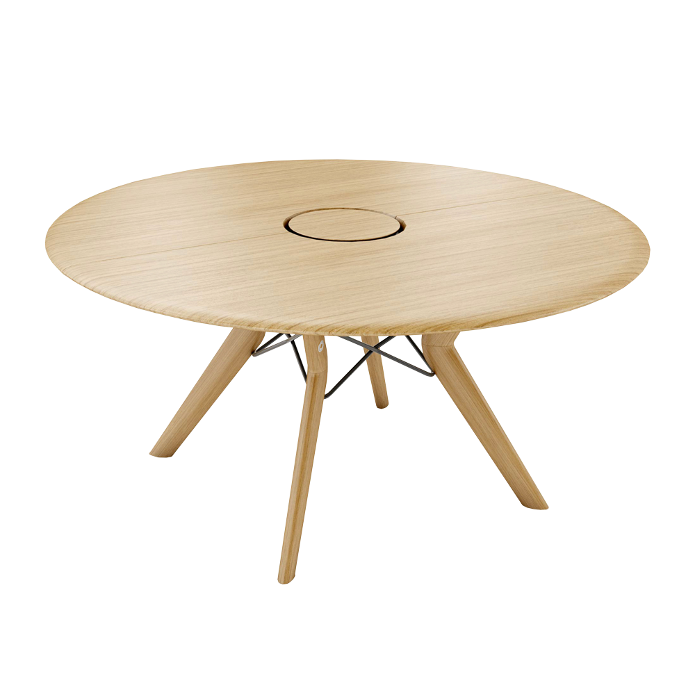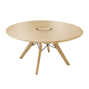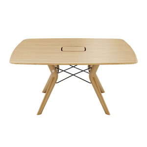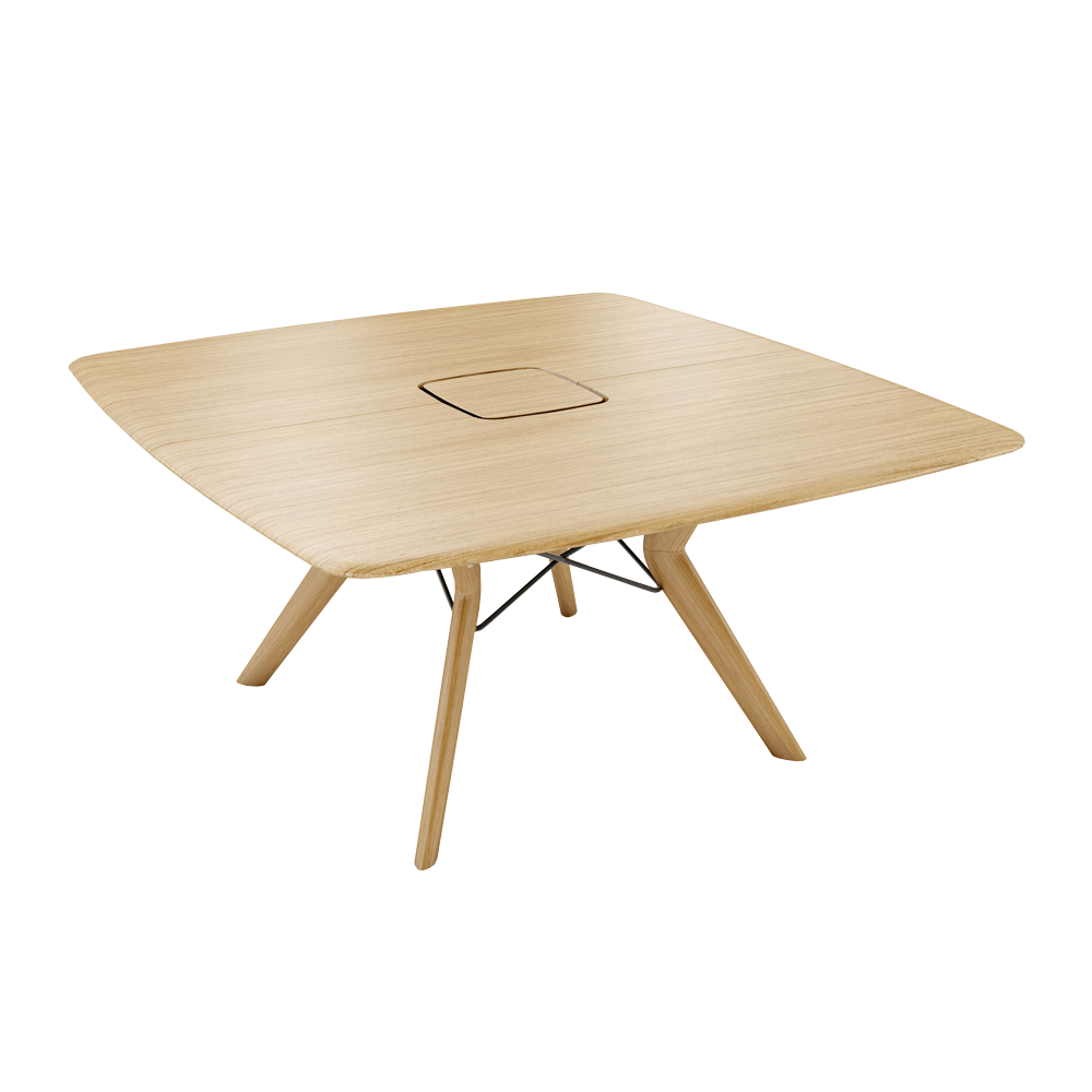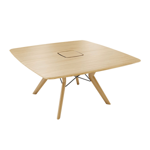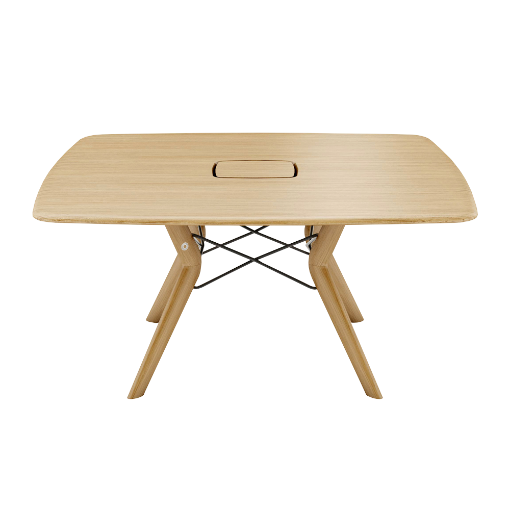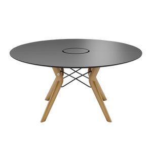La table TRAVA en FENIX NTM© ou plateau Bois massif présente un branchement Bachmann au centre
