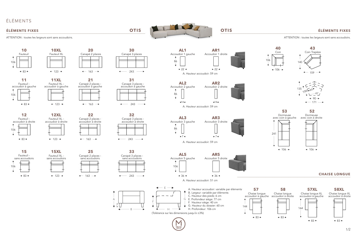 OTIS est un concept de canapé hyper-modulaire offrant des possibilités infinies avec différents éléments d'assise et accoudoirs, parfaitement adaptés à vos souhaits individuels et spécifiques: canapé 2 places, canapés d'angle, pouf et méridienne.