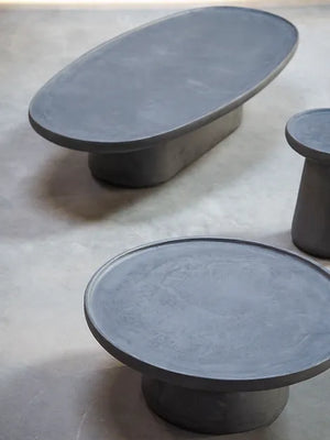 La table basse ovale Indoor Maana de Muundo est fabriqué à partir d'une composition de minéraux, de chaux et de mortier. Version Indoor. 140 x 62 x H28. Disponible à l'Est d'Eden à Liège.