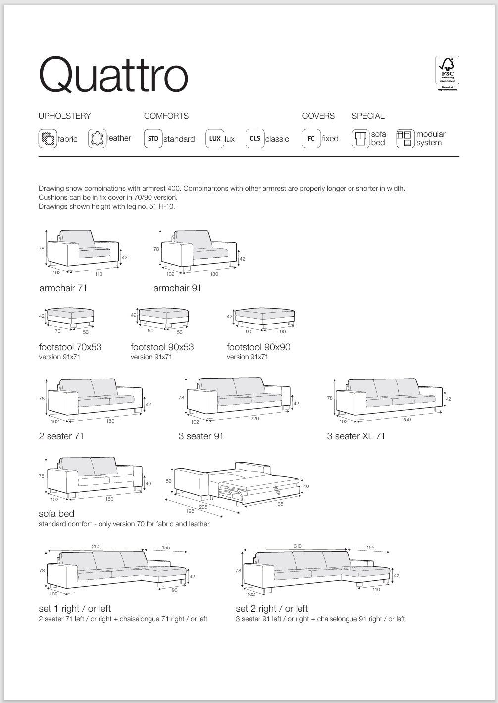 Avec une assisse standard ou en plumes, il est commandable dans de nombreux tissus ou cuirs.