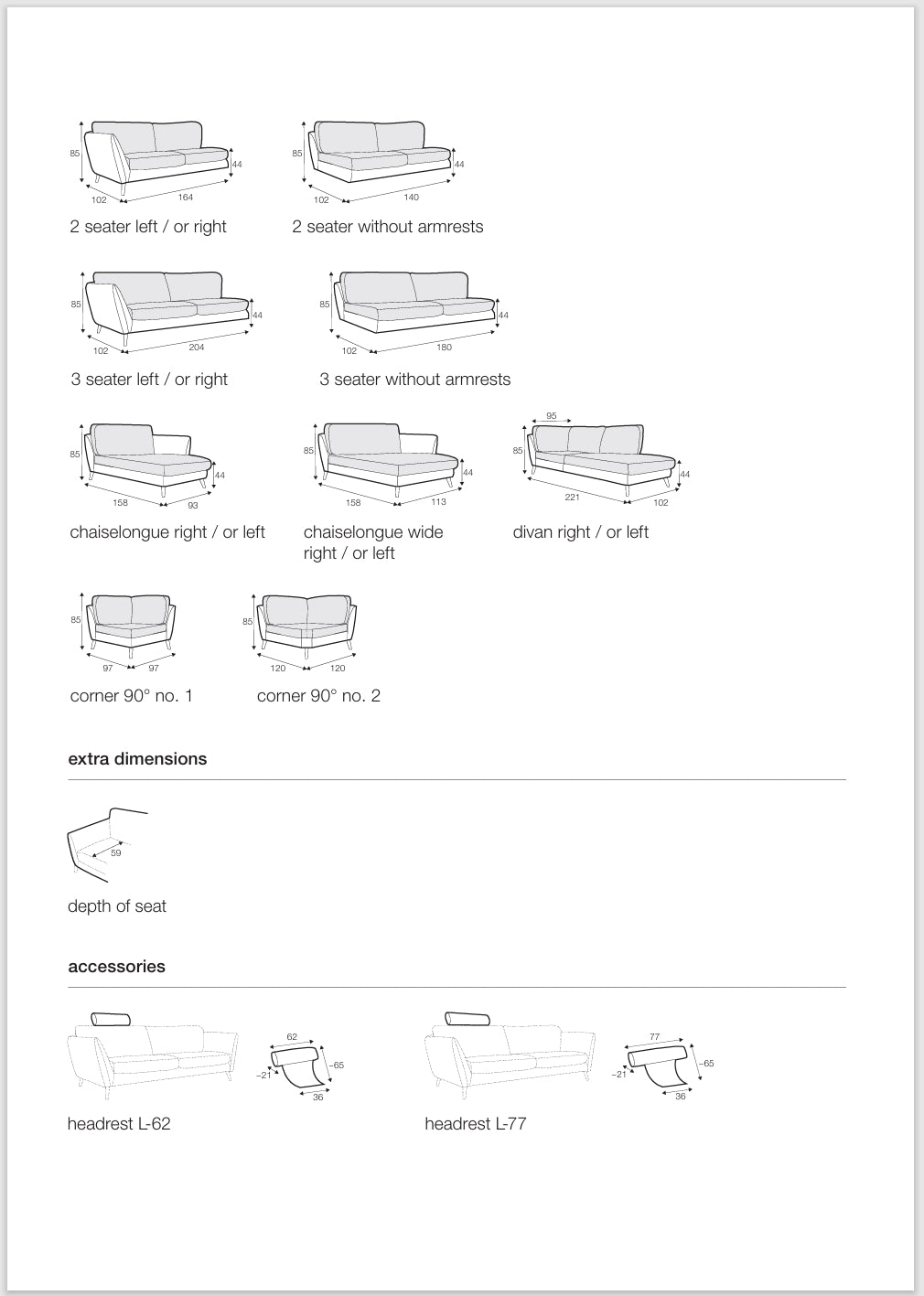NOTE : la gamme STELLA propose un cosy corner et une version de fauteuil large (140cm), ce sont des éléments spacieux, idéals pour les instants de repos ! Le plus, vous pouvez commander des sur-housses pour les accoudoirs afin de les protéger, tout en préservant le look de votre canapé.