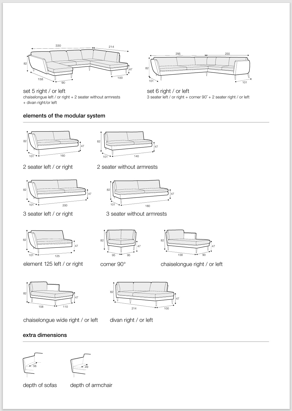 Dimensions, combinaisons et tissus disponibles