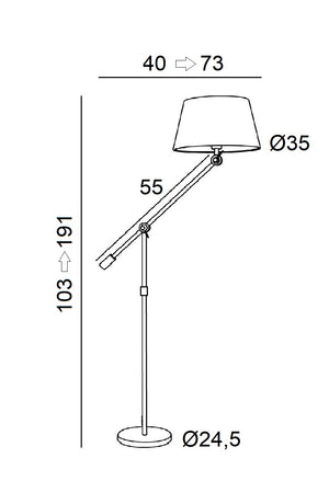 H103→191cm L40→73cm Ø35cm