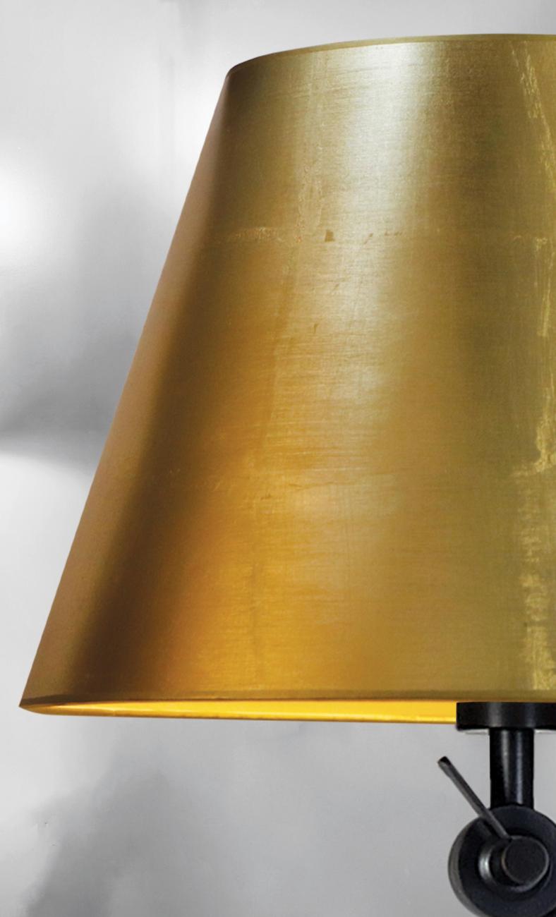 TEMBO est une grande lampe de lecture à abat-jour conique, idéale à placer près d'un fauteuil. Montée sur un socle lourd pour une stabilité exceptionnelle, TEMBO est performante et très fonctionnelle : abat-jour orientable, bras inclinable et hauteur réglable. Fabriquée en laiton massif, cette lampe est réalisée artisanalement par des artisans experts. Ses finitions sont remarquables. Pour personnaliser l'abat-jour et créer une ambiance chaleureuse et agréable, nous vous proposons un large choix de couleurs et de tissus.