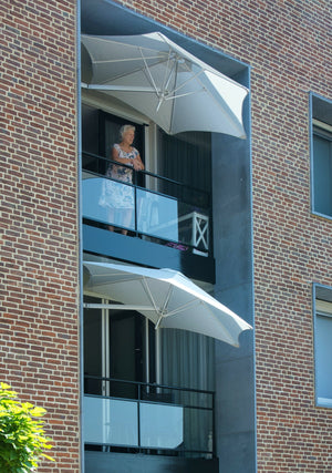 Le premier parasol mural a été développé d'un point de vue purement pratique : perdre le moins d'espace possible et assurer une résistance optimale au vent.