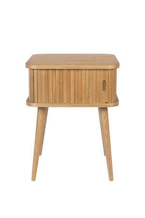 La table d'appoint Barbier de la marque Zuiver est confectionnée en placage de chêne américain avec pieds en chêne massif. Finition naturelle avec laque transparente.