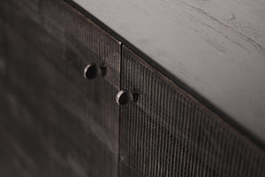 Explorez le raffinement de l'armoire Ethnicraft Grooves en teck noir. Design moderne avec 2 portes, 2 tiroirs. Réservez en ligne dès maintenant pour une touche d'élégance. Disponible à Liège, à l'Est d'Eden.