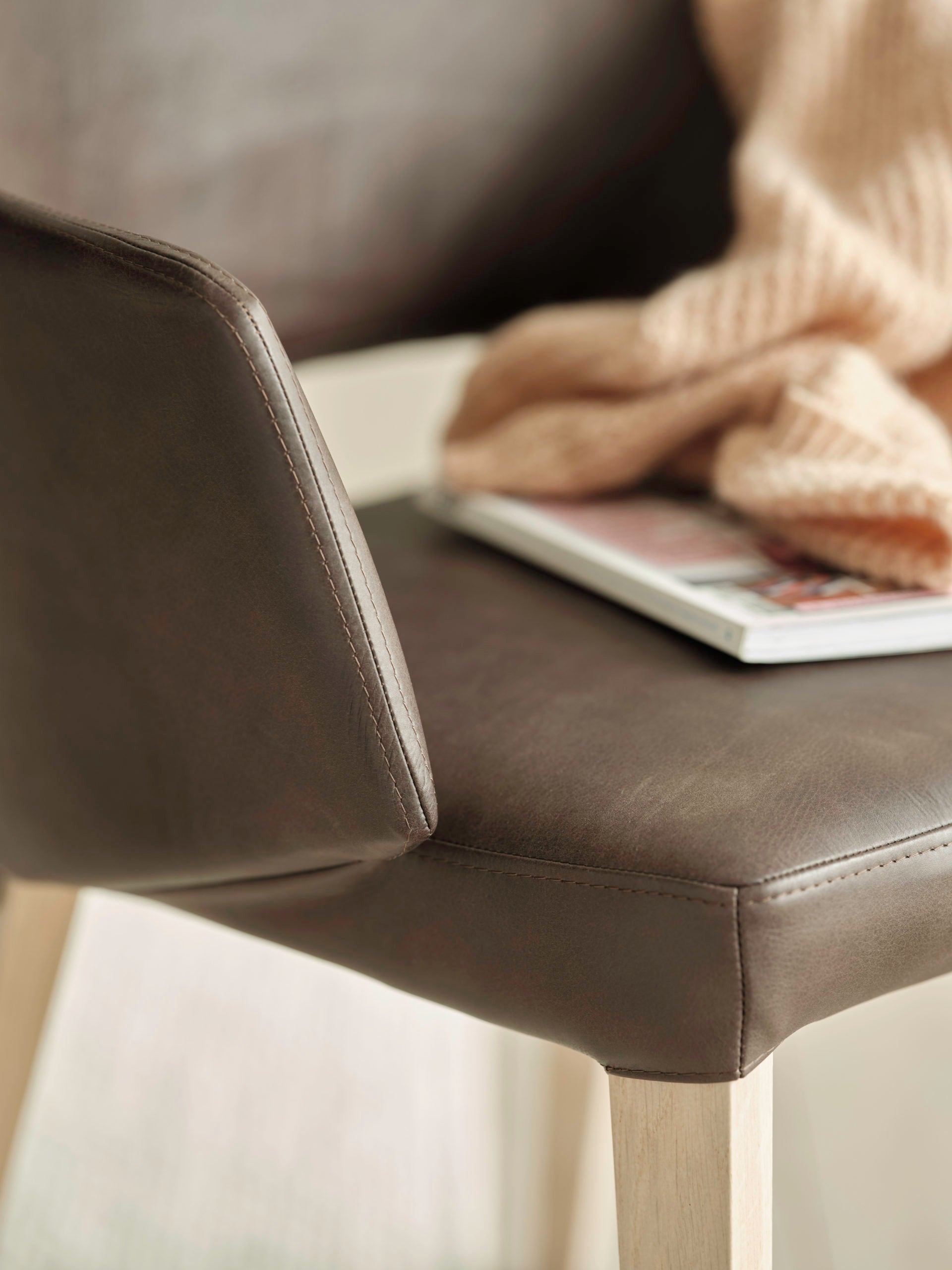 Plongez dans le confort raffiné de la Collection Lena par Mobitec. Assises complémentaires pour salle à manger, îlots et bars. Prix pour une chaise Lena tissu cat. 2, pieds chêne. Disponible à Liège, à l'Est d'Eden.